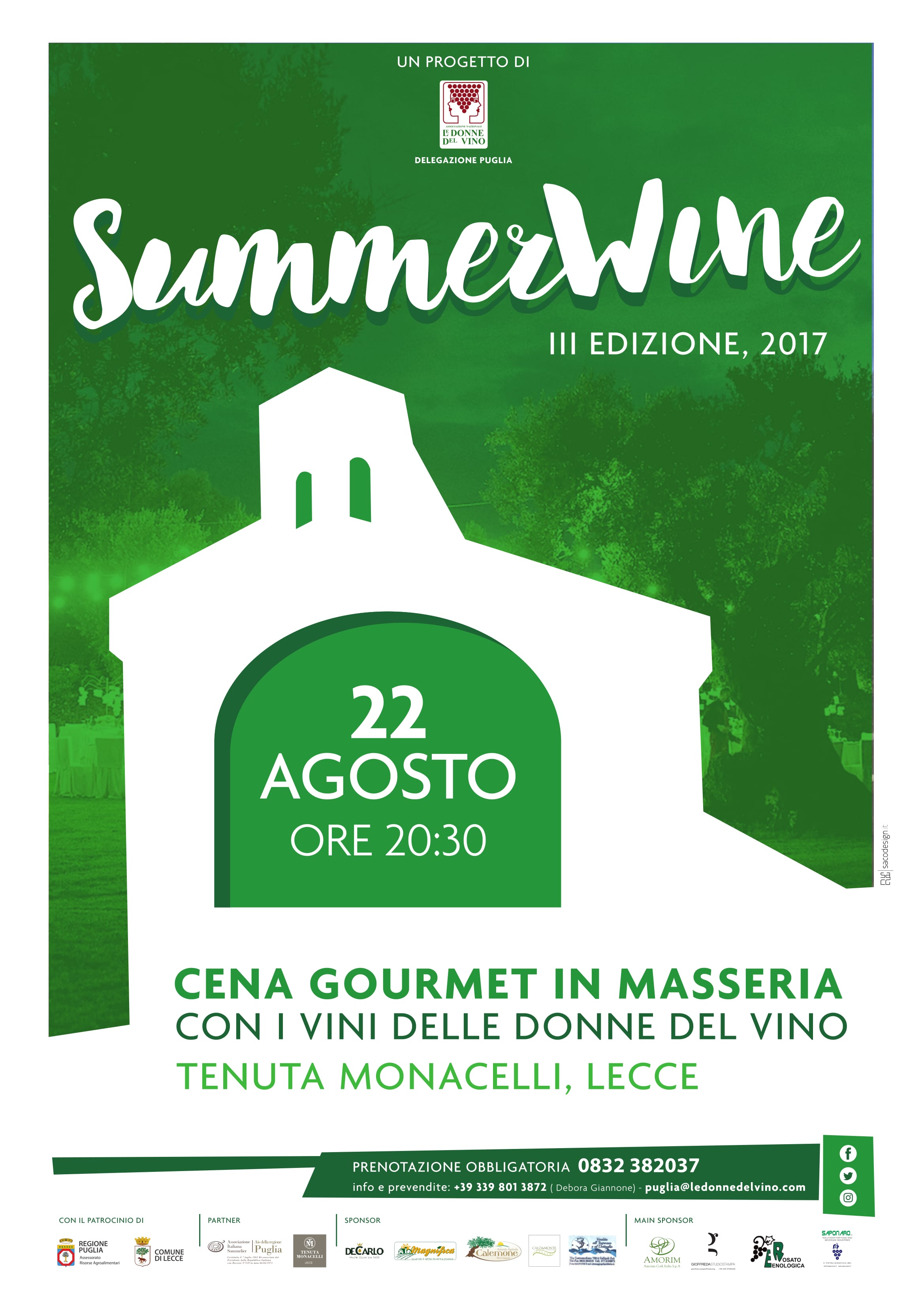 “Summerwine già alla sua terza edizione è il momento più importante dell’anno per le Donne del Vino pugliesi – spiega Marianna Cardone, delegata pugliese dell’Associazione Nazionale Le Donne del Vino – Una serata magica durante la quale 45 colleghe, amiche e imprenditrici di tutto il comparto enogastronomico pugliese innovano, sperimentano ma soprattutto fanno cultura del vino in maniera sinergica e con grande professionalità. Quest’anno il nuovo format racchiuderà in sé tutti i messaggi più salienti e rappresentativi del nostro lavoro. Vini pugliesi d’eccellenza serviti, raccontati e sapientemente abbinati a una cena gourmet, durante la quale il dialogo con i nostri ospiti e l’esperienza sensoriale sarà per noi strumento di valorizzazione, informazione e confronto con chi ci sceglie ogni giorno”.