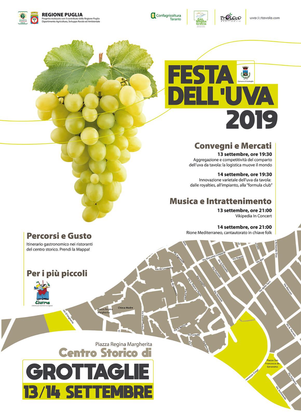L’incontro si terrà in Piazza Regina Margherita il 13 e 14 settembre alle ore 19,30. Un evento promosso e organizzato dal Comune di Grottaglie con la collaborazione dell’ Associazione Turistica Pro Loco Grottaglie, Confagricoltura Taranto, GAL Magna Grecia e la rivista specializzata di settore uvadatavola.com