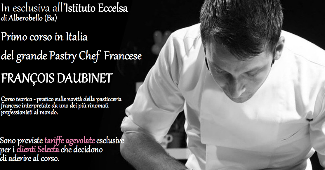 In esclusiva all’Istituto Eccelsa di Alberobello (Ba) Primo corso in Italia del grande Pastry Chef Francese FRANÇOIS DAUBINET