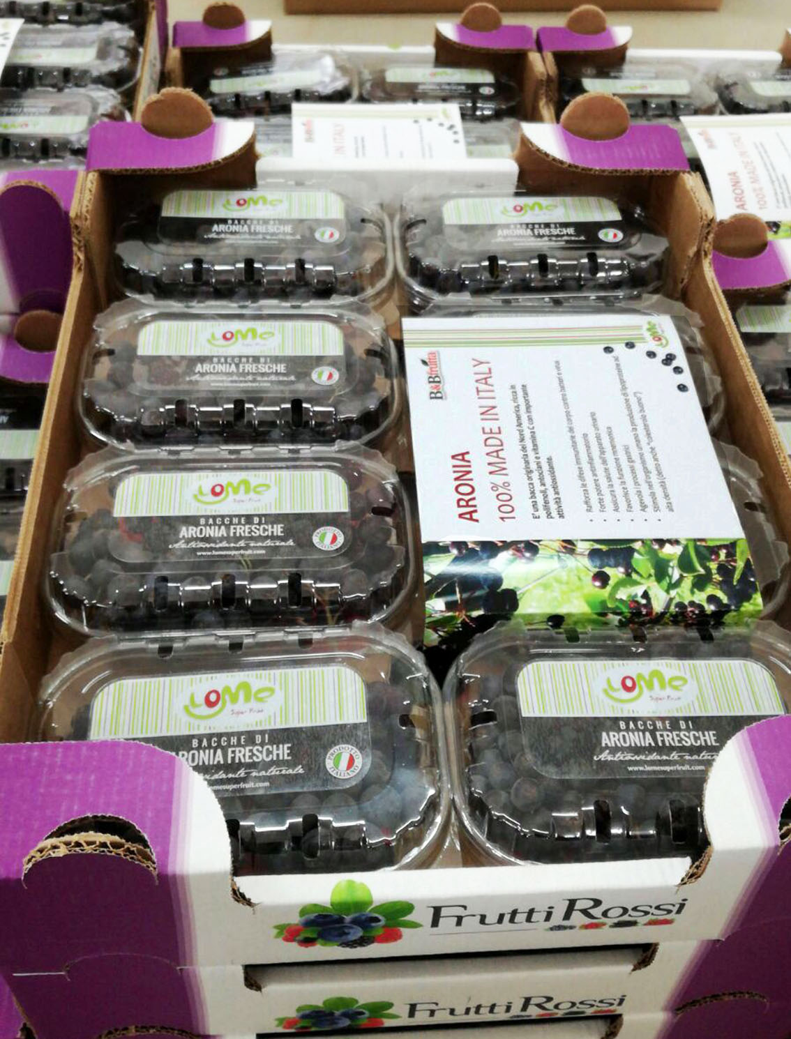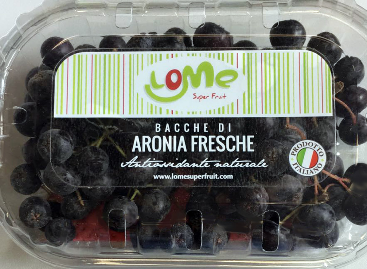 Per la prima volta sono in vendita vaschette di gustose bacche di aronia integralmente prodotte in Italia.